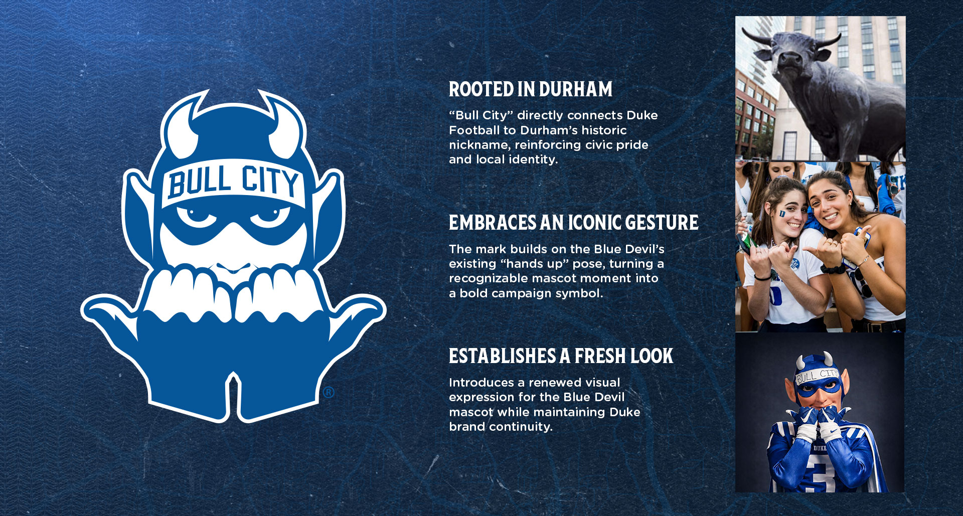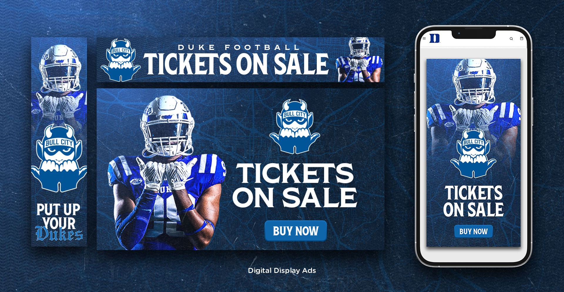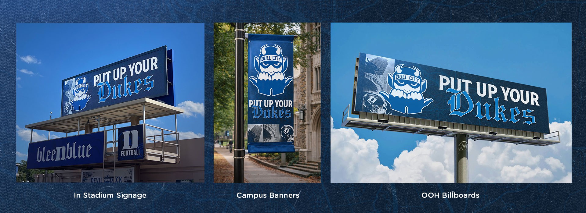 Bull City was a fully integrated Duke Football campaign built to bridge the university and the city of Durham. Rooted in local pride, the custom brand system extended across stadium, social, and marketing touchpoints to create a cohesive community-driven presence.